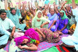 Bathinda, April 12 The protesters, belonging to local Mehna Basti and Amarpura Basti, have been demanding adequate compensation and allotment of 100-yard plots in lieu of their land acquired by the government for a bypass. The indefinite dharna by the protesters today entered its 15th day while the indefinite hunger strike by Malkiat Kaur entered its 13th day. The protest is being held outside the Mini-secretariat here. The protesters, led by founder of General Samaj Party Suresh Goyal, today took out a protest march around the Mini-secretariat here. They also raised slogans against the government and the administration. Talking to TNS, Suresh Goyal said the local Tehsildar and the local SHO today met to the protesters and took their leaders along for talks with the deputy commissioner (DC). But instead, they were asked to talk to the additional deputy commissioner (ADC) as the DC was not available. Goyal claimed that after hearing their case, the ADC said the issue could not be resolved at his level, so he would talk to the DC on the issue. He said this showed that despite knowing everything, the administration was not serious to resolve the issue as it had been adopting dilly-dallying tactics to demoralise the protesters for past some days. He said the administration should not think that it would succeed in getting their agitation failed by adopting such tactics as the protesters were adamant to continue their agitation till the acceptance of their demands. Meanwhile, Malkiat Kaur has been losing weight daily and today, she seemed to be unable to sit even. |