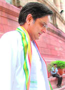 As soon as the Congress MP from Thiruvananthapuram wound up his seven-minute-long explanation in the Lok Sabha on why he quit office following the IPL controversy, fellow Congress leaders swarmed his desk like never before, flooding him with congratulations. As he accepted the gifts, a veiled look on his face seemed to be saying: Politics is strange. Apparently it is, with Tharoor today drawing the curtains on his about 10-month tenure as a minister, a charge he assumed on May 29 last. To watch him go, the Prime Minister and UPA chairperson Sonia Gandhi were not present in the House. But Finance Minister Pranab Mukherjee was there, a copy of Tharoor’s explanation in his hand. Pranab is said to have vetted it. That explained its near-perfect slant, which would serve Congress’ interests well in the Kerala Assembly elections due next year. So why did Tharoor resign? “Not because he did anything unethical or illegal, but because he was conscious that his role in IPL was distracting the Parliament from far more important business. He had no desire to embarrass the government and believed his departure would allow the PM to concentrate on greater challenges facing the nation”. So the ex-minister resigned “on moral grounds”. He even dared to be investigated: “I requested the PM to have all the fanciful and malicious charges against me probed. My conscience is clear. It’s important to me that my name is cleared.” Tharoor’s speech was laced with carefully-chosen references to Kerala and the Congress party, with Tharoor repeatedly thanking Thiruvananthapuram voters for electing him; declaring how proud he was to represent Kerala, which had fallen behind (read due to Left’s policies); professing his gratefulness to PM and Sonia Gandhi, the “finest public servants India has ever had”. The former minister even came dressed in traditional Keralite attire, the trademark Congress stole in place — all for effect. And that wasn’t all. He ensured to pepper his defence with the right emotions, quoting the great Kerala poet Vallathol — “When you hear the name of India, your heart must swell with pride; when you hear the name of Kerala, blood must throb in your veins.” “My heart swells with pride for India and Keralite blood throbs in my veins,” said the politician, who claimed earlier in his speech to be “new to Indian politics”. On this quote, he’s said to have consulted former Congress minister from Kerala Pandalam Sudhakaran, also a lyricist. The verse generated a response Tharoor was fancying, as a hitherto silent House burst into applause, with the Kerala Congress lobby thumping their desks to the extent of deafness.