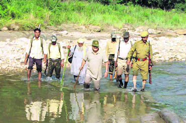 The Commissioner of the district, the District Magistrate, the Superintendent of Police, the Subdivisional Magistrate and the SHO were arrested single-handedly by him. This set an unforgettable example for all poachers — high and mighty — as far as the park was concerned, as an arrest of this magnitude, made by a mere citizen, was unheard of. Today, when the census of tigers is under way at the park amidst frequent reports of tiger deaths and various other controversies, he says: "The first concern must be to protect the tiger. Other issues can be dealt with later." He is particularly pained about the growing instance of the man-animal conflict, and says that a lot needs to be done at the political, social and administrative levels if the tiger population is to be kept thriving. He says: " The economic development programme has not managed to trickle down to the people living in the periphery. They need to realise that they, too, are stake holders in the entire process. The setting up of the park has also provided them with sources of livelihood." He points out that more compensation needs to be given to the people who lose their cattle to tigers. He is particularly harsh at the "hypocritical" approach towards the issue. "On the one hand there is a resolve to protect the tiger, and on the other the same people bay for the blood of the tiger when it carries away their cattle. The tolerance level of the villagers is low and local politicians ignite the fires." He is clear on the point that the state government will have to show the political will to check the uncontrolled growth of resorts and excessive tourism in the areas around the park. Singh’s views cannot be taken lightly as he has been amongst the longest serving members on the Indian Board for Wildlife (IBWL) and the steering committee of Project Tiger. He has also been a member of the Society of the Wildlife Institute of India, the governing body of the Wildlife Institute of India and the Forest Conservation Act Committee. Son of the late Raja Harmahendra Singh of Dada Siba in Himachal Pradesh, Raja sahib, as he is popularly known in the area, had started his association with the park as a schoolboy in 1957. His attraction and love for Jim Corbett National Park grew with each visit, which, with each passing day, grew more frequent. His active involvement with park matters was to start with his successful campaign to stop the construction of a three-star hotel at Khinnanauli by the Tourism Department of UP in 1968. This area today is the prime tiger habitat and the pride of the park. Having come from a background where hunting was a part of life, Brijendra Singh grew up as a hunter and is well known in the hills around Mussoorie for having shot many cattle-lifting and man-eating leopards. His guru was none other than the famous Colonel ANW Powell, a contemporary of Jim Corbett. The first meeting organised by the WWF, attended by Sir Guy Montford and chaired by the then Prime Minister Indira Gandhi — to put an end to tiger hunting in 1968-69 — influenced him greatly, and the realisation dawned on Singh that it was not the hunters’ lobby that was going to save the tiger in India. Singh then decided that he would only kill the man-eating leopards or troublesome, confirmed cattle lifters at the request of the poor and desperate villagers. But in 1970 this was to come to an end, too. A near fatal accident, while hunting, was the turning point. Singh decided to put away his guns and take up the camera instead. He has been often called upon by the Forest Department in a crisis to put away rouge elephants and man-eating leopards and tigers, a task which he reluctantly undertakes. Some of these man-eaters have been trapped alive by him and sent to zoos. An incapacitated tigress, unfortunately, had to be dispatched by him, while carrying off two mahouts right in the heart of the park at Dhikala in 1988. He was instrumental in getting the park area increased from a mere 520 square kilometres to 1319 square kilometres with the addition of the Sonanadhi sanctuary and buffer areas. The idea was to establish a corridor for the migrating elephants and wildlife right to Nepal. He continues to be concerned about the future of elephants. "Elephants need to have an uninterrupted corridor between the Yamuna in the west and the Sharda in the east," he says. Singh spends most of his