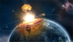End of world as we know it APocalyptic thought has a tradition that dates to the Persian prophet Zoroaster in the 14th century BC. Recently, anxiety has grown over the prediction of the end of the world in the Mayan calendar. It’s true that the Mayan odometer will hit zeros on December 21, 2012, as it reaches the end of a 394-year cycle called a baktun. But this baktun is part of a larger 8,000-year cycle called a pictun, and there’s no evidence that anything astronomically untoward will happen as the current baktun slides into the next. However, that hasn’t stopped the feverish speculating that sells books and cinema tickets. What kind of catastrophe would it take to end the world? Astronomical intruders provide a potentially serious threat. Impacts can be caused by stray rubble from the Asteroid Belt and the rocky snowballs that travel in highly elliptical orbits in the comet cloud. There are many fewer large bits of debris than small bits, so the interval between large impacts is much longer than the interval between small impacts. That’s good news. Every century or so, a 10-meter meteor slams into the Earth with the force of a small nuclear device. Tunguska was the site of the last, in 1908, and it was pure luck that that meteor landed in the uninhabited wilderness of Siberia. Every few thousand years, the Earth can pass through unusually thick parts of the debris trail of comets, turning the familiar light show of a meteor shower into a deadly firestorm. Roughly every 100,000 years, a projectile hundreds of meters across unleashes power equal to the world’s nuclear arsenals. The result is devastation over an area the size of England, global tidal waves (if the impact is in the ocean), and enough dust flung into the atmosphere to dim the Sun and kill off vegetation. That could ruin your day. Then there’s the “Big One”. About every 100 million years, a rock the size of a small asteroid slams into the Earth, causing global earthquakes, kilometre-high tidal waves, and immediately killing all large land animals. Creatures in the sea soon follow, as trillions of tons of vapourised rock cause drastic cooling and the destruction of the food chain based on photosynthesis. There’s good evidence that this happened 65 million years ago and our tiny mammal ancestors were the beneficiaries as the giant lizards were extinguished. A hundred million years sounds like a safe buffer, but the next one could happen at any time. But you can take it off your worry list—astronomers have it covered. A network of ground-based telescopes scans the skies for bits of rogue rubble larger than a few hundred meters. That’s ample time to dust off the nuclear arsenals for an interception mission if we had to. Unfortunately, the Dr Strangelove approach creates lethal shrapnel travelling in the same direction as the original object; a smarter strategy is to send a spacecraft alongside it and gently “tug” it with gravity onto a slightly different trajectory. When massive stars exhaust their nuclear fuel, the result is a titanic explosion called a supernova. The dying star brightens to rival an entire galaxy and emits high-energy particles that can destroy the ozone layer of a planet like the Earth if it occurs within 30 light years. The demise of large North American mammals 41,000 years ago has been linked to a supernova, and several other mini-extinctions may be tied to the cataclysm of stellar death. A supernova is a small squib compared to a hypernova. In this dramatic and rare event, the violent collapse of a very massive star ejects jets of gas and high-energy particles at close to the speed of light, and for a few moments the star outshines the entire universe in gamma rays. If a hypernova went off within 1,000 light years, and the Earth was within the narrow cone of high-energy radiation, we’d experience an immediate global conflagration. It’s brutal luck if a hyper nova ever goes off with its beam aimed at us. On longer time scales, attention turns to the sheltering Sun. Our constant companion is midway through its conversion of hydrogen into helium. In about 5 billion years, its guttering flame will be extinguished. The Sun’s diffuse envelope will engulf the Earth and turn it into a lifeless cinder. This is death by stellar cremation. If that seems like a comfortably distant prospect, the biosphere will actually die much sooner. The Sun burns hot as it gets older, and in 500 million years a turbocharged version of global warming will turn the Earth into a global desert. That gives us plenty of time to find better real estate. Titan looks promising. It already has the nitrogen—just add oxygen and presto! Our second home. And those wild-eyed rocket scientists who want to save us from asteroids have a thrilling plan up their sleeves: deliberately bring an asteroid in close, and with each pass it will transfer a little energy to the Earth and nudge it further from the Sun. After a few million close calls we’ll have migrated to a more hospitable orbit. —By arrangement with