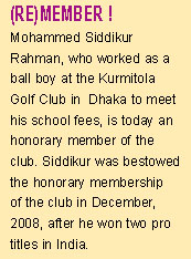 Mohammed Siddikur Rahman, who worked as a ball boy at the Kurmitola Golf Club, Dhaka, to pay for his school fees, created history by becoming the first Bangladeshi to win an AsianTour event. The unheralded man from Dhaka, who learned his game by fashioning his first golf club with a seven iron head on a metal rod, defeated South Africa's Jbe Kruger in an exciting play-off to win the Brunei Open at Bandar Seri Begawan last weekend. Playing in a $ 3-lakh prize money full-field Asian Tour event, the 25-year-old kept his cool despite bogeying the last hole to slip to the play-off with Kruger. Siddikur then scripted the historic victory, playing a par on the first extra hole with his rival Kruger missing a 10-foot putt on the par-four 18th at the picturesque Empire Hotel and