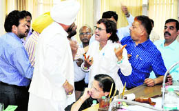 Councillors engage in heated arguments at the general house meeting of the Chandigarh Municipal Corporation