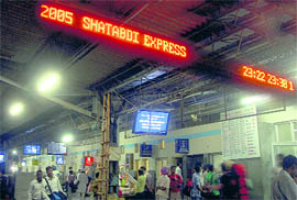 A signboard shows the arrival time of the evening Shatabdi Express at the Chandigarh railway station on Wednesday. Tribune photo: Vinay Malik