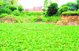 The encircled portion shows a breach in Badi Nadi at Daultapur village
