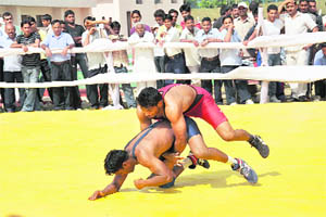 Faridabad, October 23 After the conclusion of wrestling competition in the womens section the contingent from Rohtak emerged head and shoulders above others bagging in all two gold,one silver and two bronze medals in different weight categories. Wrestlers from Sonipat stood second. It bagged a gold and two silver.The contingent from Haryana Police was third bagging a medal in each of the gold,silver and bronze category. The good response of the public towards the discipline of wrestling was perhaps due to good show by the wrestlers from Haryana in the Commonwealth Games in which they bagged seven out of 10 gold in wrestling. In fact, wrestlers on the whole bagged 17 medal,including five silver and four bronze. |