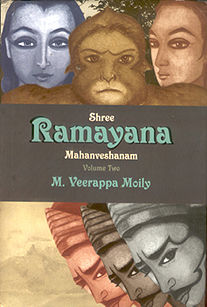 Shree Ramayana Mahanveshanam (the great quest) is a translation of Moily’s Kannada original by C. N. Ramachandran, Padma Sharma, P, C. Naganna, Laxminarayana Bhat, and Vijay Sheshadri. The structure of the book is classical, and it emulates the ancient epics. It is written entirely in verse and comprises 225 cantos. The magnum opus alludes to several contemporary issues as it is written for "the people of the new epoch and new sensibility." The import of the following verse, for instance, is quite clear, and it speaks volumes of Moily’s maturity as a writer and thinker, and you wouldn’t expect it to be in this book: The fire of communal hatred, the lava of odious vengeance/Brought down three domes. The culture of the epochs,/ Treta, Dwapara and Kali yuga, the endless chants of/The great cultural conquest — what did all these yield? In the Introduction, chief editor C. N. Ramachandran says while in Valmiki’s Ramayana, Lakshmana is a shadow of his brother; modern versions like Maithilisharma Gupta’s Saketh treat Lakshmana as the hero. The same is true of the present work, he says. This does not seem to be the case. Although Lakshmana plays a more prominent role in Moily’s version, he still does not appear to be the protagonist because if you take him out of the story, the plot suffers a little, but it does not collapse, but if you take Rama out it does. Among the other prominent characters, Ravana gets a more sympathetic portrayal, and Sita is not a passive shadow of her husband. The plot of the Ramayana is too well known, so we shall dwell on its treatment by the writer. It is ultimately the story of the victory of dharma (righteousness) over adharma (unrighteousness). "Despite being the ruler of a huge kingdom," writes Moily, "Ravana couldn’t rule over his inner world. As opposed to him, in the beginning, Rama couldn’t become the king of even a small province like Ayodhya; but he was able to rule over his inner self. Unravelling the different phases of dharma, voluntarily retreating into the forest in order to obey the words of his father, subduing the demons in order to protect the sages, killing Vali and Ravana — all these constitute the triumph of dharma." Being a politician, deep down in Moly’s mind, there must be some desire to establish an ideal society, a Ramrajya — a Utopia. "Step cautiously on my dream unfolded before you. If, one day, my dream becomes the dream of our country and the goal of our national consciousness, I will feel truly blessed." But the author is realistic. For thousands of years, the Ramayana story is part of the Hindu ethos, but it does not seem to have made any difference to the national character. Has the world learnt any lesson?/The ideal of ‘Ramarajya’ has remained a dream./Has there been peace? Has man found happiness?/The game of life goes on, unceasing, on this earth. Whatever the case might