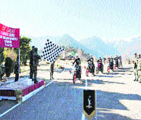Jammu, January 10 The motorcyclists had arrived in a procession here yesterday. After a night halt at Dharmund, the expedition proceeded to Srinagar today. During the course of the expedition, which started on January 6 from Ambala, its 14 members will cover approximately 4000 km of rough Himalayan terrain in Jammu and Kashmir , Himachal Pradesh, Uttarakhand, UP, Sikkim and Arunachal Pradesh. The expedition will end at Jabalpur on February 14. The Corps of Signals will be celebrating its centenary on February 15 this year. A large number of adventure activities like sky-driving, trekking,white water rafting and motorcycle expeditions in the mountains and deserts are being organised to salute the Signalmen. |