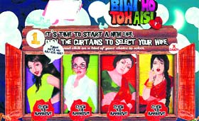 It is as simple as this — open curtains to select your wife. Options galore. Shalini Sheherwali, ambitious, tech-savvy, career oriented; Bijli Thakur, dominating, bossy, control freak and Milli Chulbulli, talkative, bubbly and funny…and more as you keep opening the curtains.