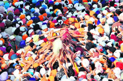 Dehradun, March 24 At the shrine’s paschim dwar (western gate) overlooking a water front, a mélange of persons from rural and urban backgrounds stood devoutly in queues waiting for their turn to offer prayers. There were hundreds of others, who unmindful of the bright sun, lined up in two long queues to assist in wrapping the Jhanda Sahib with endless number of covers. The sheer dexterity of these men was all too evident. Their skill and devotion ensured that the Jhanda Sahib at no point in time rested on the ground. With the sun going down, the proceedings reached a crescendo. On a cue from Mahant Devender Das, many more devotees joined in to steady the flaming red and pink flag which was hoisted as the clock struck 5 pm. After the flag hoisting, prasad was distributed and ‘surma’ was applied. Even to this day, the Darbar Sahib carries on with the tradition that began in 1687. “As has been the practice, the old Jhanda ji was removed in the morning and the ceremony was presided over by Raj Purohit Bhagwati Prasad Thapliyal. Subodh Uniyal assisted him,” said Vishnu Nautiyal, Coordinator of the Darbar Sahib. No wonder that the sangat comes from different corners of the country. And they return home satisfied with a promise to be back whenever there is a call from the shrine. Next year, the Jhanda ji will be hoisted on March 12. |