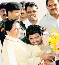 at service Uttar Pradesh Chief Minister and BSP chief Mayawati being welcomed by her supporters at the Chandigarh Airport on Saturday.