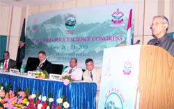 Uttar Pradesh Governor BL Joshi addresses a session of the All-India Police Science Congress in Dehradun on Thursday. A Tribune photograph