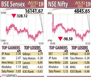The FM’s statement followed a sharp fall in the BSE Sensex which slipped below the 16,000 mark after 15 months in intra-day trading. It finally closed at 16,141 points, down 328 points. What has started worrying investors is the impact of the ongoing agitations in India. Policy making in the government has already been slow in the last few months and investors apprehend that the ongoing agitation on the Lokpal Bill will deter foreign investors in the stock market and the corporate sector may also postpone investments. Gold, which has an inverse relationship with equities continued its record run and crossed Rs 28,000 in futures trade. Gold is considered a safe haven and whenever there is uncertainty in the economy investors shift their assets from other categories to gold. Oil also fell by $ 4 on fears of a global recession which should help the Indian economy. The FM today reviewed the global economic situation with RBI Governor, D Subba Rao and chairman of the Prime Minister’s Economic Advisory Council, Dr C Rangarajan. Today, the Indian markets contracted 1.9 per cent which is only around 1/3 rd of the fall seen in the US and European markets. In comparison to Asian markets also, the performance has been better as some of the major Asian markets saw 4-6 per cent losses. Mukherjee said the effect of the market sentiments in the US and Europe has a bearing on Indian markets as well in the short-term. He said that Europe’s debt problem and worries about the world economy had resulted in sharp fall in the US and European markets. Stocks that were particularly affected in the US were those of companies that have global presence, the Finance Minister said. IT and banking stocks were the worst hit. Infosys was the biggest loser and fell by 5.5 per cent to Rs 2,224, not a good farewell to its founder, N R Narayana Murthy as it was his last day as Infosys chairman