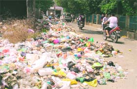A view of the garbage being dumped near Kailash Cinema in Ludhiana