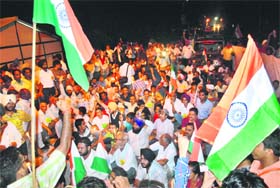 Patiala, August 22 Hundreds of city residents under the leadership of Dr Paramvir Gandhi and Kundan Gogia gathered near the statue and carried out a candlelight march from there to Moti Bagh Palace, house of Minister of State for External Affairs Preneet Kaur. They handed over a memorandum to Preneet Kaur regarding the implementation of the Lokpal Bill in its original form in order to put an end to corruption. Meanwhile, a blood donation camp was organised at Rajpura by Punjab Yuvak Chetna Manch and Rotary Club, Rajpura, at the Rotary Bhawan as a mark of their support towards Anna Hazare. As many as 250 persons donated blood during the camp. |