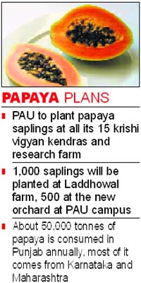About 50,000 tonnes of papaya is consumed in the state per annum and most of it comes from Karnataka and Maharashtra. Initially, former Deputy Commissioner of Amritsar KS Pannu, who is now chairman of the Punjab Pollution Control Board, had launched the papaya project in the district. Pannu said cultivation of Taiwanese variety ‘Red Lady’ was started in some parts of Amritsar on experimental basis. “I am happy that on my request the PAU has adopted the papaya cultivation project for trial at a large scale,” he said, adding he had made available 11,000 saplings of papaya to the PAU. The variety has been procured from Sholapur in Maharashtra and is hermaphrodite (genderless) in nature. It does not need more than 10 per cent male plants in the field. The PAU has decided to plant the saplings at all its 15 krishi vigyan kendras and also at its four orchards in the state, besides at its research farm on the campus. As many as 1,000 saplings would be planted at Laddhowal farm, 500 at the new orchard at PAU (Ludhiana) and the remaining would be planted at the university research stations at Abohar, Gangian, Bahadurgarh, Bathinda and Gurdaspur. PAU Director of Research Dr SS Gosal and Head of the Department of Horticulture Dr PS Aulakh would coordinate the project. PAU Vice Chancellor Dr SS Dhillon said he was hopeful of favourable results to the project at the commercial level. |