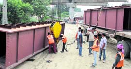 Jalandhar, September 22 Eight iron structures of 9 m length each have been unloaded from huge containers using JCB machines. Since there are two separate arms with a gap of 36 m each, four such structures are to be fitted onto each of the arm. While one arm of the bridge from the old city side will move on towards the railway station entrance, the other arm will go in the opposite direction towards Mai Hiran Gate. While the whole process is expected to take over one and a half months, railway officials have not yet taken a date for closing of the railway track for the actual launch of the structures. “There still is a long way to go. As and when we reach the completion of the joining of the structures, we will ask for the clearance”, said a railway engineer. The engineer said,” The launching of the structures will be done in the night so that the road and railway commuters face minimum inconvenience. The contract for the launching of the structures has been recently awarded to a Delhi-based contractor. It still is not clear as to whether the Domoria underpass, which is currently being used as the main connection between the old and the new city, will be closed or not.” The railway and MC officials have now given a deadline of December for the completion of the work, which has been on for over a decade. The SE (B&R), Kulwinder Singh, said, “It is a very skillful and a laborious job. It surely will take a few months. It certainly will be a historic moment for the city when things get over.” |