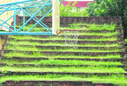 Jalandhar, September 23 And in this mess, the spectators gallery, which would have otherwise been used by the spectators to witness basketball matches was left and wild grass was allowed to grow on it. “As the stairs were not properly constructed and maintained, wild grass kept on growing on it. This gives a poor view of the court”, said a sports official. Sources in the Sports Department said that the construction was done in an emergency and was later left to ruin. The employees at the District Sports Office also maintained that they had been regularly cutting the grass for the upkeep of the basketball court but then it was out of question for them to keep working on it. “It is rainy season and grass keeps on growing on the stairs after every fortnight. What can we do?” asked another official, requesting anonymity. To a query as to how much amount was spent on the construction, promptly came the reply, “There is no official record to ascertain this. All we know is that they were constructed at the directions of some senior officials for a tournament”, said an official. The District Sports Officer, Rakesh Kaushal, said that this matter has been taken up with Director Sports, Pargat Singh and even they wanted to find a solution for it. “There has been talk to demolish it but nothing can be done until we get official direction to do so. Till then, this gallery will remain like this. However we ensure that the grass is cut on time”, he added.