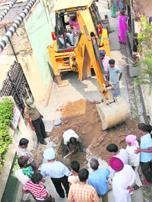 Jalandhar, September 28 Kuldeep Kaur (55), a resident of Guru Nanak Pura (East) became the second victim of gastroenteritis yesterday. On September 22, a migrant woman from Guru Nanak Pura (West), Rupa Rani, had died of gastroenteritis, while many other residents were taken ill with symptoms of vomiting and dysentery. District health officials and Municipal Corporation (MC) today swung into action. While the health officials took water samples from Guru Nanak Pura (East), the Municipal Corporation authorities discussed the problem with the residents and later dug up a street in the locality to find out the cause behind the contaminated water supply. This morning a team of health officials conducted a door-to-door survey and distributed chlorine tablets to the residents. They also conducted medical check-ups and prescribed medication wherever necessary. The health officials organised a medical camp at Government Elementary School, Chowgitti, from where reports of gastroenteritis are also being reported. Earlier, yesterday, after receiving complaints of contaminated water supply, the MC authorities had disconnected 30 water supply connections. Meanwhile, the five water samples taken by the health teams from Guru Nanak Pura (West) on September 23 have failed, forcing them to intensify their survey in the locality. The Tribune conducted a random survey of the locality and found out that almost every second home has one person suffering from gastroenteritis, primarily due to faulty water connections and filthy living conditions of the residents.