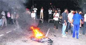 Jalandhar, October 2 The incident occurred at about 10 pm when certain youths, according to eyewitnesses, teased a woman traveling on an auto-rickshaw. When woman’s husband Sukhjinder Singh objected, youths dragged him out of the vehicle and thrashed him mercilessly on the road near the DAV College level crossing. Noticing all this, shopkeepers, customers and passersby assembled at the spot following which the assailants fled from the scene. The victim then informed his family members and friends in his village about the incident. After receiving the information, scores of villagers reached the spot and blocked the road. They also collected rubber tyres and wooden furniture from the nearby market and set it afire on the road. The mob also raised slogans against the police authorities demanding arrest of youths. Protesters also staged a dharna on the road thus disrupting vehicular traffic. SHO, Police Station Division No 1, Nirmal Singh, reached the spot and assured action against the youths. The police has registered a case on the complaint of Sukhwinder Singh. Though sources said certain suspects were rounded up, nobody was arrested as yet. |
