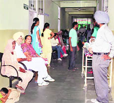 Harried patients at Guru Gobind Singh Medical College Hospital, Faridkot, on Tuesday. A Tribune photograph
