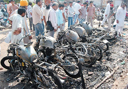 Bathinda, October 11 Three of the bikes were bought recently by their owners who were quite upset after watching their bikes go up in flames due to the alleged negligence of the contractor. The incident took place at around 11 am when fire erupted in one of the bikes when someone allegedly tried to steal fuel from a bike parked in the last row in the parking area. The infuriated bike owners entered into heated arguments with the contractor in the evening as he refused to compensate them immediately. A bike owner, Jaskaran, a bus conductor by profession, said he had purchased the bike just a couple of days ago and had not even got it registered. "People are unable to recognise their bikes as the vehicles were charred beyond recognition in the fire," he said. Others like Harbhajan Singh and Dyal Singh alleged that the contractor is now trying to delay the matter by saying that the compensation would be given only after a meeting with the general manager of the Punjab Roadways Transport Corporation (PRTC). The bike owners said the contractor issues slips to the customers in lieu of taking care of their bikes. Contractors Vijay Kumar and Kulbhushan said they would compensate the bike owners only after the intervention of the PRTC authorities as they have asked them many times to get a wall, surrounding the parking area, constructed but their pleas have fallen on deaf ears. He said they had a contract with the PRTC for Rs 1.2 lakhs for 11 months and they collect the money by issuing slips to the vehicle owners to park their two- wheelers inside the bus stand. Their contract is going to expire in the next few days, they said. The contractor denied that anyone was found stealing fuel from the bikes parked before the fire erupted. He pointed out that he was among those who rushed to douse the flames when the fire erupted. He, however, feigned ignorance over the reason behind the fire. He pointed out that there could be a short circuit in one of the bikes which lead to the fire. The contractors said that the matter has been taken up with the general manager of PRTC after which compensation would be given to the bike owners. General Manager (GM) of PRTC M. S. Hundal was not available for comments as he was away due to medical leave. GM (Operations) RS Sidhu of the PRTC who came from Patiala to oversee the functioning in absence of Hundal said that the PRTC or its GM has nothing to do with the compensation to bike owners as PRTC has already given the land to park vehicles on contract basis to the contractor. "We are charging the contractor to utilise our space. It is his sole responsibility to compensate the people," he said. Not ruling out the possibility of fuel being stolen from the motorbikes, the GM (Operations) said the contractor had earlier also compensated people for their lost bicycles or motorbikes. Traffic manager of the PRTC, Jaswinder Chahal said he along with the other staff at the bus stand too rushed to douse the flames. "If the contractor is issuing slips to take care of the motorbike, then he must compensate those whose bikes were damaged in the fire," he said.