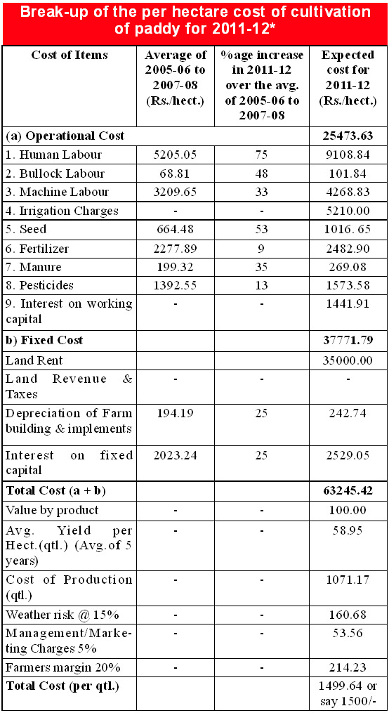 Chandigarh, October 27 Earlier, the farmers had protested when the Centre announced Rs 1,110 per quintal as the MSP of paddy (grade A) in June this year. The state government had urged the Centre to fix the wheat MSP at Rs 1,800 per quintal. Is the growing of paddy and wheat remunerative for farmers taking into account the existing MSP of both crops? The straight answer is: It is not remunerative to grow paddy and wheat, especially for small and marginal farmers, if one is to include family labour and the rental value (per annum) of the land in the overall production cost of both the crops. “However, if the family labour and rental value is excluded, then it is remunerative to the extent that a small farmer family can merely survive on it, but still cannot think of a decent living,” said Balwinder Singh Sidhu, Director, Agriculture, adding that the family could not meet its social needs such as spending on children’s education, marriages and other social obligations. “That is why almost all small and marginal farmers are under debt in the state”. Earlier, in consultation with the Punjab Agricultural University (PAU), the Agriculture Department had pegged the cost of production of paddy for the current fiscal year at Rs 1,500 per quintal. It included the rental value of land and family labour, besides a margin of 20 per cent. However, the MSP announced was Rs 1,110 per quintal. Both PAU and the department officials worked out the cost of production by using a scientific method to obviously avoid facing any embarrassment while presenting the document to the Commission for Agriculture Costs and Prices, an organisation given the task to recommend the MSP of various crops to the Central Government before it is approved by the Union Cabinet. The cost of production of wheat was worked out at Rs 1,700 per quintal for the current fiscal year. However, the MSP has been pegged at Rs 1,285 per quintal. Moreover, the Bharti Kisan Union (Rajewal) had calculated the production cost of wheat at Rs 2,909 per quintal (including 15 per cent profit for farmers) and of paddy at Rs 2,295 per quintal. Balbir Singh Rajewal, BKU president, had also submitted a memorandum to Union Agriculture Minister Sharad Pawar and the CACP in this regard. However, in case, the rental value and family labour is excluded from the cost of production, there can be a net return in the range of Rs 20,000 per acre for growing paddy and about Rs 17,500 per acre for wheat at the existing MSP. This figure has also been worked out by a state government organisation. That means, a farmer owning 5 acres can earn about Rs 1,87,500 from paddy and wheat crop cycle in a year. Again, the sum is hardly sufficient for a farmer family of five members to have a decent living. If one divides Rs 1,87,500 by 365, the daily income of the family comes to a little more than Rs 100 per head per day, less than the daily wage of a casual labourer. For farmers owning land above 10 acres, farming is viable to some extent and for big farmers owning land in the range of 50 acres or above, it is a remunerative profession. Dr MS Sidhu and Dr Sukhpal Singh, both senior economists of the PAU, said without financial support from other sources, life for small and marginal farmers would continue to be stressful. Dr Sukhpal Singh said during the past some years, about two lakh small and marginal farmers had moved out of the farming sector.