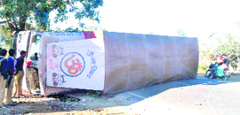 Truck overturns due to fog