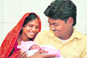 Baby Boom: The world's symbolic 7 billionth baby " Nargis" with parents Vineeta and Ajai Kumar at the Mall Health Centre in Malihabad town, near Lucknow |