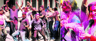 Mussoorie, March 9 The streets presented a riot of colours where the revellers accompanied by the beating of drums thronged the main roads of villages and towns, greeting each other by throwing colours on each other’s faces. In Mussoorie the youth were seen breaking the earthen pot filled with milk and curd hung high on a rope at Library and Kulri Bazaar. The tradition is performed to pay obeisance to Lord Krishna, who was also fond of the festival, according to Hindu mythology. The streets presented a riot of colours with revellers, dancing to the accompaniment of drums, thronging lanes and bylanes to celebrate Holi, which passed off peacefully. The supporters of political parties, forgetting all rancour and old grievances, exchanged embraces, wishing "Happy Holi" as unseen hands squirted them with a well-timed coloured water spray. The politicians were also seen mingling with commoners on the occasion. For children it was a day filled with fun as they hurled water-filled balloons from rooftops chanting “Holi hai." The police administration remained alert in Mussoorie the whole day as the police personnel kept a close watch on any nuisance activity. Elsewhere, in the villages and small hamlets of Garhwal, barring a few incidents, the festival was celebrated with full gusto and bonhomie. The school children entered into a scuffle with commuters near Karnprayag on Rishikesh-Badrinath highway on the issue of demanding “Holi” money from every passing vehicle by placing blockades. The situation could have turned ugly but the senior members of the village salvaged the situation after light scolding and explanations. No untoward incident was reported on the occasion as the festival passed of peacefully, contrary to the fears of the administration, which was tense due to the conclusion of vote-counting for state elections, a day earlier.