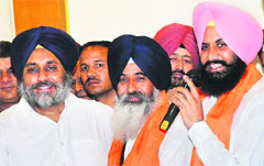 Chandigarh, May 1 Bains brothers will become associate members of the SAD in the Punjab Vidhan Sabha after they inform Speaker Charanjit Singh Atwal and apply for a change in their status. Though they will remain Independent legislators, they will be attached to the SAD and the party whip will apply to them as to any other party legislator. Sukhbir said their return was unconditional and the differences that had emerged between them and the party leadership had been resolved. Though the forthcoming Municipal election are said to be the immediate reason for taking the two into the party fold, both sides denied that being the motive. Balwinder represents Ludhiana (South) and Simarjit Atam Nagar (Ludhiana). Four municipal councillors and scores of other supporters of the duo have also joined the SAD. Municipal elections are due in the state in June this year. Since both brothers represent constituencies with mainly urban following, it is a strategic move on part of the SAD to take them back. Besides, with the induction of two independent MLAs into the SAD, its strength in the Vidhan Sabha has touched the magic figure of 58 on its own in a House of 117. With another 12 BJP legislators supporting the SAD-BJP alliance, the government is firmly on saddle. Former Jail Minister Hira Singh Gabria, who had lost to Simarjit in the last elections, is reportedly annoyed with the move of taking Bains brothers back into the party fold. “That is an internal party matter and it has been sorted out. Today’s move is a conclusion of our talks with various party leaders”, Sukhbir said, adding that all the modalities about the municipal elections would be finalised within the next 10 days. What it means Balwinder & Simarjit are associate members of SAD They will be Independent legislators attached to the SAD; party whip will apply to them SAD strength in the Vidhan Sabha has now touched the magic figure of 58 |