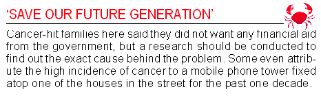 Residents of the area feel that contaminated underground water might be cause of the high incidence of cancer cases in the locality. "Since most of our people have died of stomach cancer, we feel that the water supplied here may be the cause," said Manu. Will take up matter, says ADC