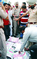 Jalandhar, June 9 District Election Officer Puneet Bhardwaj said he had received 14 complaints regarding code violation till Saturday evening. The police has also booked the Congress candidate from Ward 39 and her husband following a complaint by SAD workers. The police on Friday night nabbed Vineet Kumar, a resident of Dakoha village, while distributing four bags of pulses and wheat flour in Ward 13. The police has also rounded up the ‘recipient’, Sunny, for his alleged involvement in the case. The items were to be distributed on behalf of an Independent candidate. A similar case was also reported in Ward 55 where supporters of a Congress candidate levelled allegation against his rival. The issue was brought to the notice of the police later. Supporters of a PPP candidate were also found distributing grocery items in New Model Town area. The suspect, Manjit Singh, owner of a general store, was booked on a complaint filed by the returning officer of the area today. The police have also recovered two bags of flour weighting 10 kg each from the shop. Deputy Commissioner of Police (DCP) Sarbjit Singh revealed that cases under Section 171-B of the IPC were registered against the accused at the Rama Mandi and police station, Division No 6. In another case of poll code violation, two persons were nabbed with eight cartons of country-made liquor at a naka in Basti Baba Khel area last night. The suspects — Amit Kumarand Yesh Paul — were arrested for transporting liquor in a car. |