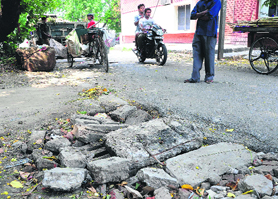 A damaged and blocked road gully at Sector 22 in Chandigarh. Tribune photo: Parvesh Chauhan