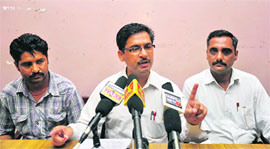 Rajinder Jamwal of People’s Revolutionary Movement during a press conference in Jammu on Tuesday. Tribune photo: Anand Sharma