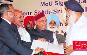 Shimla, July 26 The two states on Thursday signed a memorandum of understanding committing them to build a 3.75-km aerial ropeway. The ropeway, to be constructed within three years, is a joint-venture. Of the 3,751 metre-long link, 274.582 metre lies in Punjab and the rest in Himachal. The project cost is Rs 85 crore. Himachal Pradesh Chief Minister Prem Kumar Dhumal and his Punjab counterpart Parkash Singh Badal termed the MoU as historic. Arun Sharma, director, Tourism and Civil Aviation, Himachal, and Karamjit Singh Sra, director, Tourism and Cultural Affairs, Punjab, signed the agreement on behalf of the two governments. "The aerial ropeway will not just connect the two shrines by providing easy access and promoting tourism, but will also bring the two states closer in terms of regional understanding," Dhumal said. Badal said though the project took long to take off despite the keenness of both states, it would be completed within three years. "Today will go down as a red letter day in the history of the two states," he said. Of the 70 lakh pilgrims who visit the Naina Devi temple in Bilaspur district every year, 90 per cent are from Punjab. "The ropeway will help provide an easy, safe, economical and comfortable mode of transport to reach the hilltop temple. It will also greatly reduce the pollution and traffic congestion caused by the huge number of pilgrims," the Punjab CM said. The ropeway will have three terminals -- one in Punjab and two in Himachal. It would carry at least 800 persons per hour in one direction. The two states will set up a Special Purpose Vehicle (SPV) to act as a concessioning authority. It will pay for land acquisition and the compensation accruing to land owners. The project