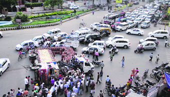 Jalandhar, July 31 Thankfully, the truck was carrying empty cylinders, otherwise it could have proved fatal. One of the labourers,identified as Mukesh, resident of Bulandpur road, travelling in the back of the truck, sustained severe foot injury as his leg got trapped under the overturned vehicle. Assistant Sub-Inspector (ASI) Kewal Singh said the accident occurred at 4 pm today when the truck loaded with cylinders stopped at the traffic light in the chowk and on getting the green signal, the truck driver hurriedly attempted to take a U-turn, resulting in the overturning of the vehicle. Tarsem, driver of the truck, however, said, the accident occurred as the steering got jammed when he attempted to take a U-turn. Five persons travelling in the truck, including the driver, had a providential escape as they managed to come out of the vehicle easily, the police said, adding that it took around half an hour to rescue the labourer, whose leg got trapped under the overturned vehicle. The police said the labourer’s foot got badly crushed and he was rushed to the Civil Hospital, where he was said to be out of danger now. |