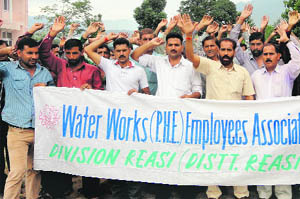 Katra, August 11 “If the government fails to meet our demands in a week’s time, the water supply across the state will be disrupted,” said Munshi Ram, a leader of the Water Workers (PHE) Employees Assocation while addressing the protesters. He alleged that the government had always discriminated against them and deprived them of their rights. “Besides disruption of water supply, roads will also be blocked if our demands are not met in a week’s time,” the leader added. The agitating workers are demanding a daily wage of Rs 125 to all categories of PHE employees, status of daily rated workers, release of remaining one-and-half day ex gratia to permanent employees, technical higher pay scales as already given to the employees as per SRO-149 of 1973, regularisation of all ITI and non-ITI daily rated employees and replacement of old vehicles with new ones. |