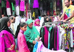 Srinagar, August 13 With Eid-ul-Fitr less than a week away, major markets of Srinagar, including Lal Chowk, Jehangir Chowk, Hari Singh High Street, Jamia Masjid and Batamaloo markets are flooded The shops at most of the places remained open till late night because of the Eid rush. Sales in Srinagar’s commercial hub Lal Chowk have considerably picked up with long queues being witnessed outside garments, toys, sweets and confectionery