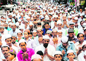 Dehradun, August 17 Qari Ahmed Qasmi, Qazi of the Jama Masjid at Paltan Bazaar led the congregational prayers. The mosque was packed with devotees offering prayers even on the road across the mosque. A huge rush of devotees was also seen at all other important mosques in the city. |