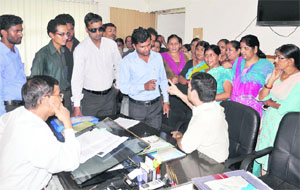 Councillor Sachin Gupta with residents of Yamuna Colony at the office of the Chief Engineer of PWD in Dehradun on Wednesday. Tribune photo: Vinod Pundir Bahuguna pays courtesy call on Nishank