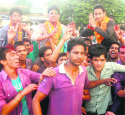 Dehradun, September 5 NSUI's Sushil Singh, who polled 750 votes, was elected president. His nearest rival Akhil Bharatiya Vidhyarthi Parishad's Vijay Raj Chauhan polled 589 votes. Similarly, NSUI's Devendra Singh Negi was elected general secretary, polling a total of 702 votes in his favour. He defeated his nearest rival ABVP's Sanjay Chowdhary, who got only 577 votes. For the post of joint secretary, Nidhi Kala of the ABVP stood winner, polling 315 votes. Manisha Kothiyal was elected treasurer, polling 371 votes. As for the post of union representative, Ankit Rawat, stood elected, polling 217 votes. A total number of 1369 students of DBS (PG) College, Dehradun, participated in the polling. |