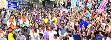 Dehradun, September 7 Only ABVP candidate Mahesh Jagudi filed his papers for the post of president. For the post of general secretary, Nitin Chauhan, a student of MA (Mass Communication-1), and Ankit Joshi, a student of MA (History-I), filed their nominations. Vikas Kumar Saini, a student of BCom (II), filed his papers for the post of joint secretary while Nikhil Singh, a student of BSc (III), and Saurab Mamgain, a student of BCom (II), filed their papers for the sole post of university representative. No nomination was filed for the post of vice-president, treasurer and executive members today. Deputy Election Officer Vineet Vishnoi said 28 nominations forms were sold today. He said 52 nomination papers had been sold since yesterday. The highlight of the first day of filing nomination papers was ABVP presidential candidate Mahesh Jagudi’s procession. It was a day of show of strength for the ABVP. Meanwhile, DAV (PG) College’s proctor broad members were present at the gate of the college to ensure that only students enter the college. TheID cards of students were also being checked. |