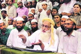 Shahi Imam of Punjab Maulana Habib-ur-Rahman addresses a press conference in Ludhiana on Friday. Photo: Inderjeet Verma