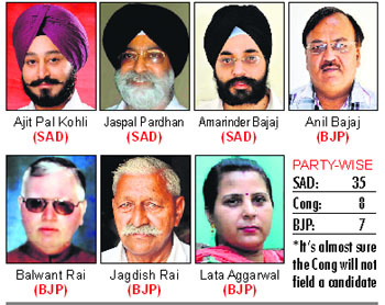 This will be followed by elections to the posts of Mayor, Senior Deputy Mayor and Deputy Mayor. Of the 50 municipal councillors, 35 belong to the SAD, seven to the BJP and eight to the Congress. It is almost certain that the Congress will not field a candidate for any of the posts. Insiders say though Deputy Chief Minister and SAD president Sukhbir Singh Badal has picked a candidate to be made Mayor, aspirants are still lobbying for the post. Sources close to Sukhbir say the names of candidates for the posts of Mayor, Senior Deputy Mayor and Deputy Mayor will be disclosed during a special meeting of the Patiala MC House to be held at 11 am tomorrow. “It could be anybody - Ajit Pal Singh Kohli, Jaspal Pardhan or Amarinder Bajaj,” said a senior Akali leader. For the post of Senior Deputy Mayor, incumbent Anil Bajaj, former Patiala BJP president Balwant Rai and senior BJP leader Jagdish Rai are in the race. For the chair of Deputy Mayor, BJP’s Lata Aggarwal is the sole contender. She is the only woman BJP councillor. If the SAD-BJP alliance decides to make a woman councillor Ludhiana’s Deputy Mayor, then a Scheduled Caste BJP councillor would be made Patiala’s Deputy Mayor. |