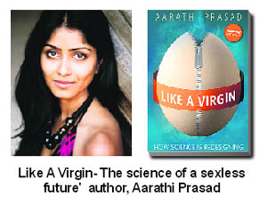 source of all creativity- love - may soon be pushed into history to be recounted in myths. Like the narratives of honesty are. Reams and reams of love poetry, serenading compositions in music, and the world of romance invoked in art to woo a lover may all become a thing of the past. And myths may be brought back to reality, if men and women will be able to procreate by themselves. Almost all religions project such myths. Kunti had Karna despite being a virgin, Mary had Jesus, Kauravas, the 100 sons of Dhritrashtra came out of an incubated lump, delivered by Gandhari. Sita emerged out of the earth. In the much talked about book 'Like A Virgin- The science of a sexless future' (Oneworld Publications), author, Aarathi Prasad, a London based single mother, with a Ph. D. in biology explores this possibility. Her work is based on a premise that though a woman goes through all the pain of child bearing and rearing, she has been seen only as a 'vessel' - a kind of living incubator to carry the child. Great scholars - Plato through Leonardo da Vinci, believed that only men were complete, Aristotle believed that women were reproductively defective. All these vehement 'scientific' beliefs carried through human evolution have resulted in a paradoxical situation for women; while they are never given complete biological right over their children (in all cultures a child is identified by the father's name), they are blamed for any genetic defect their child carries.
