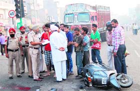 Amritsar, October 6 According to information, the deceased used to work as an accountant and was going towards Beri Gate to meet his client. The truck hit him from back side after which he, along with his vehicle bearing registration number PB-02-AS-1438, slipped under the truck (PB-02-BE-8764). He died on the spot. The truck was going towards the Jhabal road side. Eyewitnesses said the truck driver jumped over a 15-ft-high wall of PowerCom’s office in order to escape from the scene. He was later caught near the Pink Plaza Market. Bhagwan Singh, investigating officer, said the accused was identified as Baljit Singh. A case under Section 304-A of the IPC had been registered against the driver of the truck, he added. |