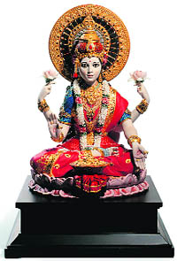 For most Indians, Diwali is the time to exchange sweets, buy new clothes and jewellery, settle past debts, extend a hand of friendship and wish all a good fortune. It is also the time to seek the blessings of Goddess Lakshmi, the consort of Lord Vishnu and also the deity of wealth, happiness and beauty. Four things mark the modern-day celebrations of Diwali — food, light, sound and gifts. Sweets are an integral part of the festival. So are the ubiquitous fire crackers, besides the giving and accepting gifts as also the diyas or the earthen lamps and candles, which are lit up in most homes. Diyas and candles play a significant role in this festival of lights. The latest are aroma candles, which come in all colours and sizes and in various avatars — plain or scented, in jars or as floaters. These are both soothing and energising as they contain fragrant oils that fill your environment with the right energy flow and banish bad karma. However, the downside of the festival is the fireworks, which are getting more and more sound-breaking, charged with extra exploding capacities that challenge the sound barrier. The good news is that there has been a simultaneous campaign to shun these noisy crackers and make Diwali more eco-friendly with sparklers that do not damage the atmosphere and are easy on the ears and lungs. The best part of the festival is gifting which has become an integral part of Diwali. Figurines of Goddess Lakshmi and Lord Ganesha are the most popular gifts during Diwali. These can range from a few rupees to lakhs depending on the kind of material used, craftsmanship and the embellishments used which can range from semi-precious stones to the precious ones, besides those in silver, gold and diamond. Joie de vivre Candles, pooja thalis, clothes, sweets, dry fruits, cookies and chocolates all do brisk sales in an atmosphere charged with cheer and joie de vivre. Since Diwali is considered one of the most auspicious times of the year, leading companies launch lifestyle products like televisions, motorbikes, mobile phones, jewellery collections, furniture and a plethora of other products. Silver is especially popular during the Diwali season with coins which have imprints of Lakshmi and Ganesha being the most in demand. Other silver gifts gaining popularity in trendy homes include photo frames, coasters and glass table supports. Tempting discounts are offered by retailers to entice customers, who are in a mood to splurge, thanks to the bonuses and other incentives given by organisations. Perhaps, a bulging wallet is one of the reasons why Diwali is sometimes associated with gambling. Business sense Indian gifting business during Diwali is estimated to be around