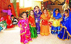 Students of Bhavan Vidyalaya (junior wing) during an exhibition in school on Wednesday.