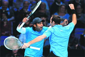 London, November 8 They were pushed hard by the sixth seeds in a match lasting one hour and 31 minutes, twice having to come from a break down in the second set before eventually sprinting to the finish line with a barrage of winners. Paes and Stepanek now have a dead rubber in their final match against top seeds Bob Bryan and Mike Bryan. Later, defending champion Roger Federer also guaranteed his place in the last four of the singles event with a straight-sets win over Spain's David Ferrer. The Swiss world number two, bidding for a seventh title at the end-of-season finale, dished out yet more punishment to Ferrer in a 6-4 7-6 victory.