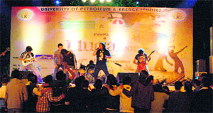 Dehradun, November 23 Over 5,000 students from 20 institutes situated across the state and from other states participated in the festival. Earlier, the event was inaugurated by Chancellor, UPES, SJ Chopra in the presence of Pro-VC Utpal Ghosh, Dean, College of Management, Dr Sengupta, Director, Administration, Brig SS Dhillon (retd), Director, Student Affairs, Brig AK Sharma (retd) and other senior dignitaries on November 22. Arun Dhand, Director (Govt and Media), said 33 events were held during this festival which included solo performances and group performances in various performing arts viz music (instrumental and vocal), dance, drama, skits, face painting, model making, collage making and a number of games. Interesting captions were given to some of the events by students like "Battle of friends" , “Atulya Bharat”, “Food graveyard”, “Gutergoon”, “Born amigos”, “Sansani”, “Logo-X”, "Thirkan”, “Swagger shock”, “Goonj of silence”, “Ping pong”, “Funk with junk”, “Artomatic” etc. On the concluding day of the festival today, rock band “Astitava" held the audience spellbound. 'Astitava' is also the official partner of the Government of India for the project - Save the girl child - and has also to its credit the creation of Delhi Anthem for the Delhi Tourism. |